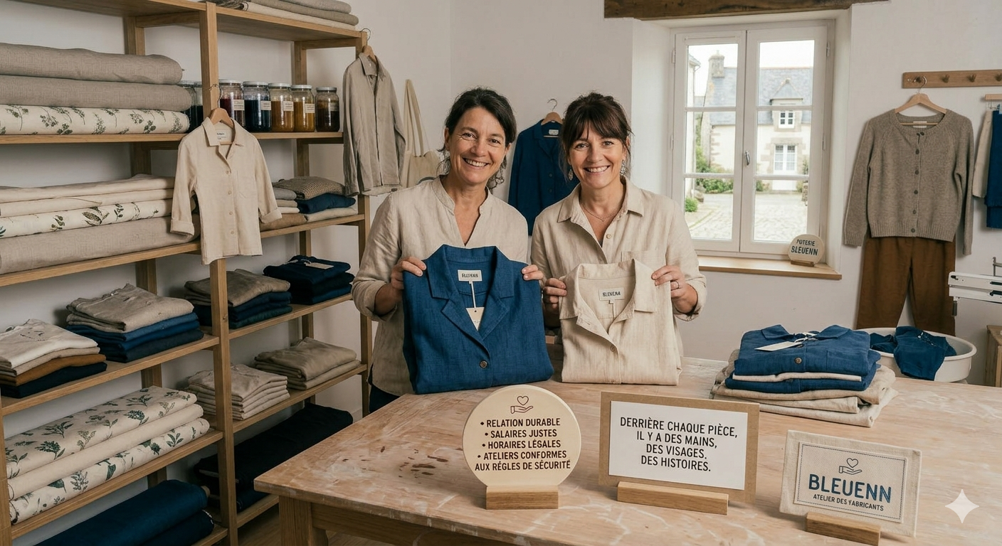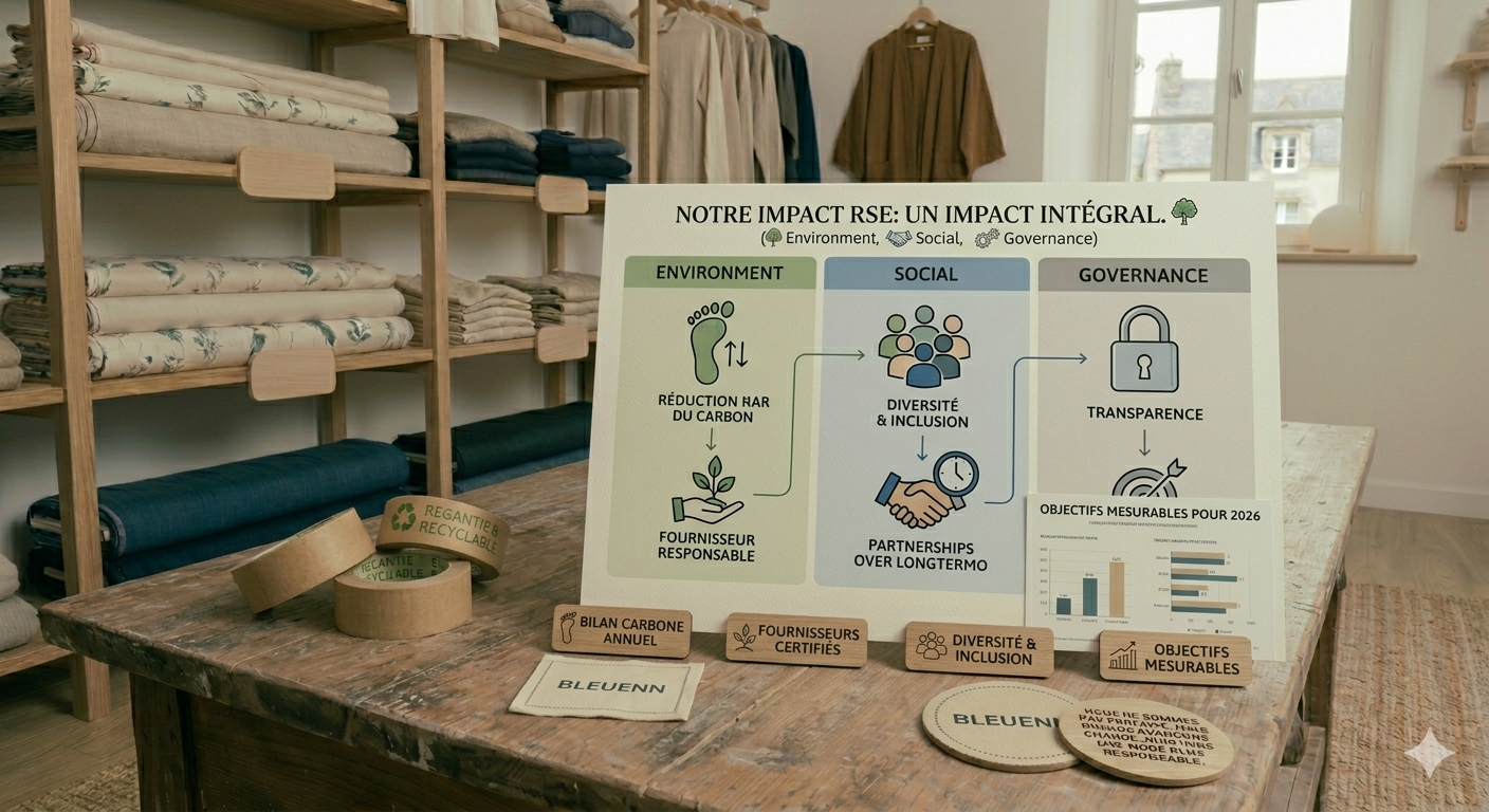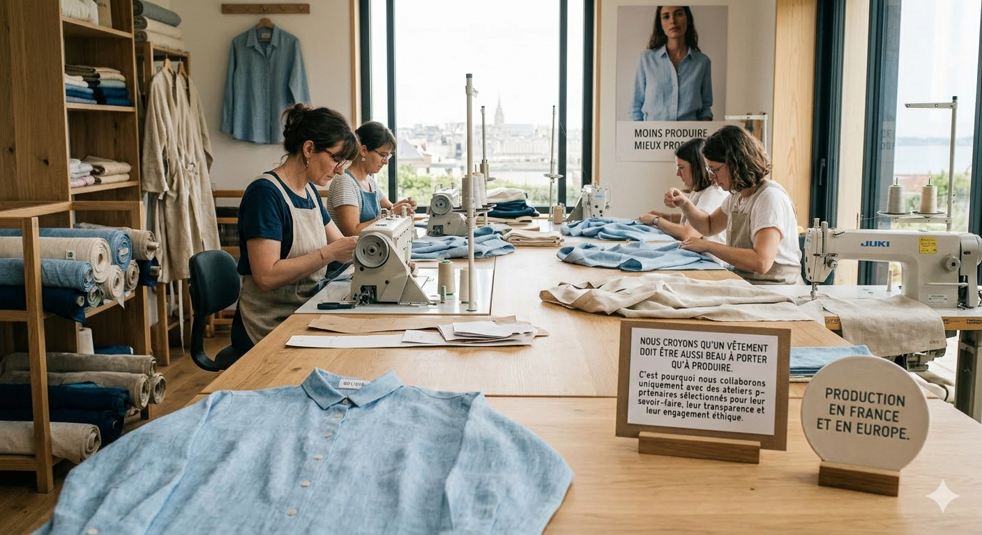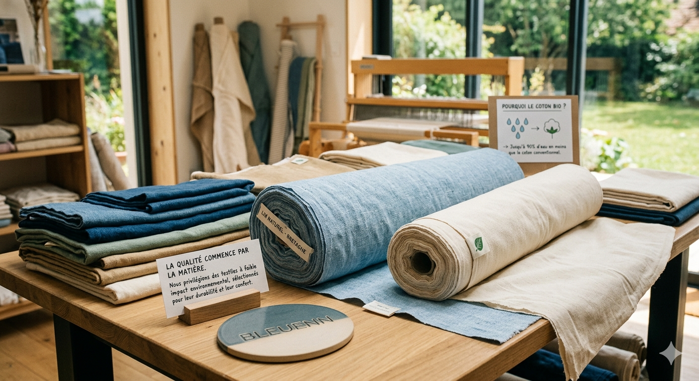 Nous privilégions des textiles à faible impact environnemental, sélectionnés pour leur durabilité et leur confort.”